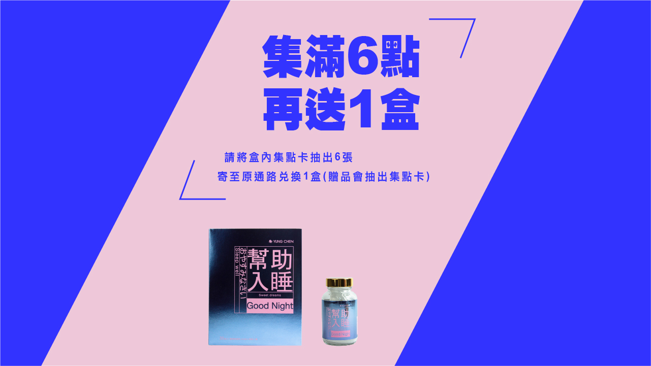 A:有哦,為了回饋廣大消費者,「幫助入睡」這支產品裡面都有附集點卡,集滿6點就贈送一盒!