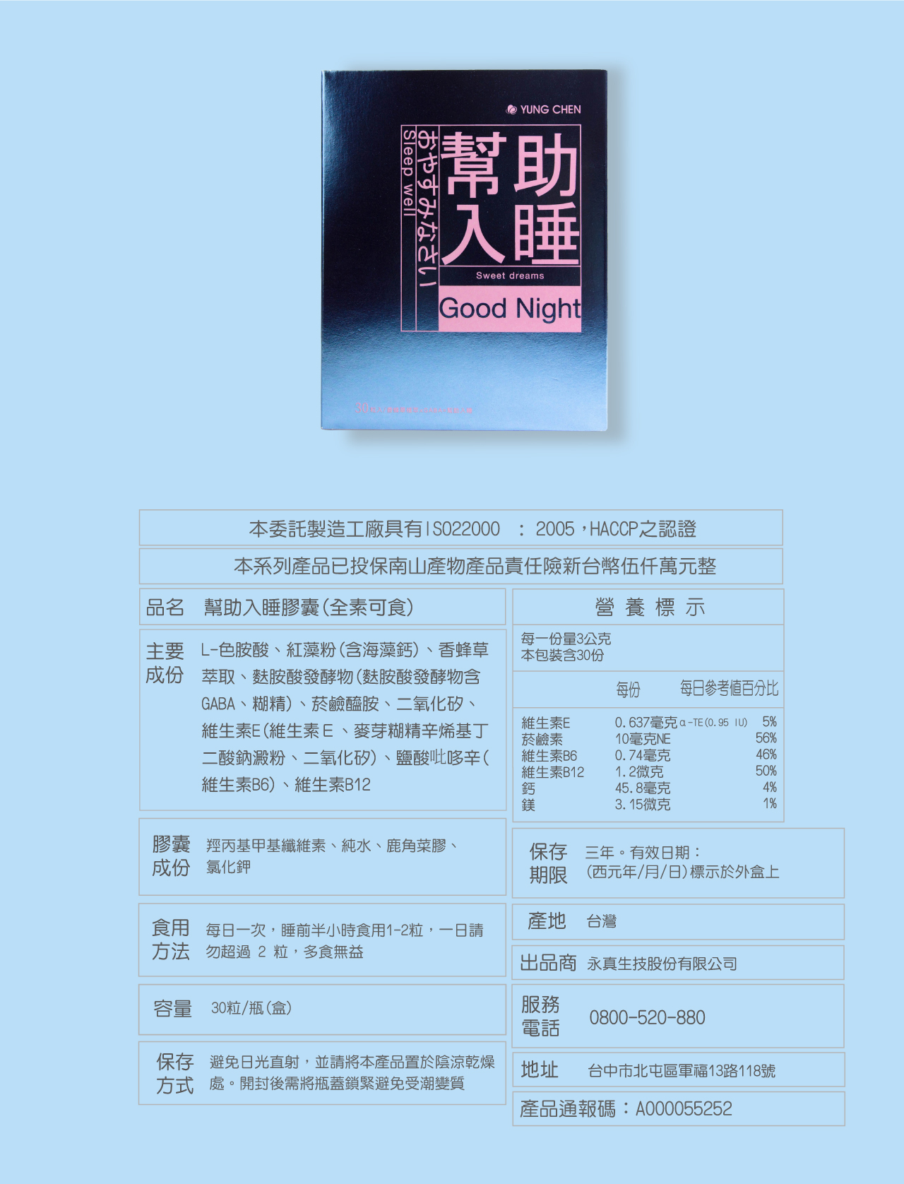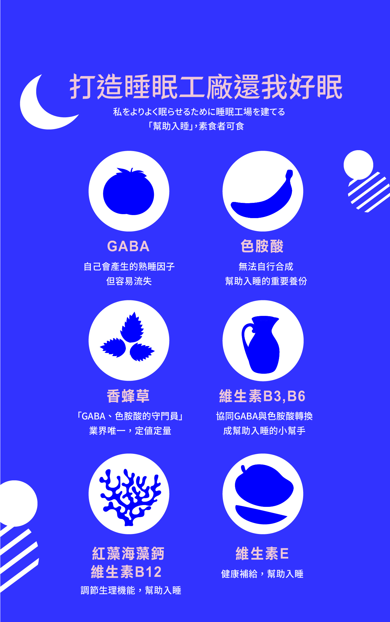 A:「幫助入睡」特別添加了義大利萃取香蜂草,可以留住流失的GABA,鎖住關鍵的熟睡因子。