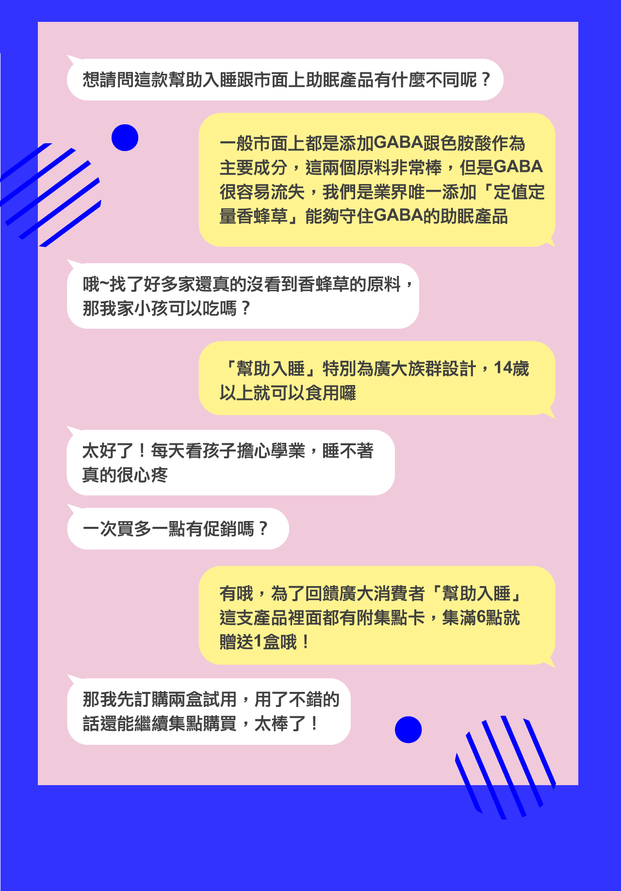 Q:「幫助入睡」這支產品跟市面上的助眠產品差在哪?