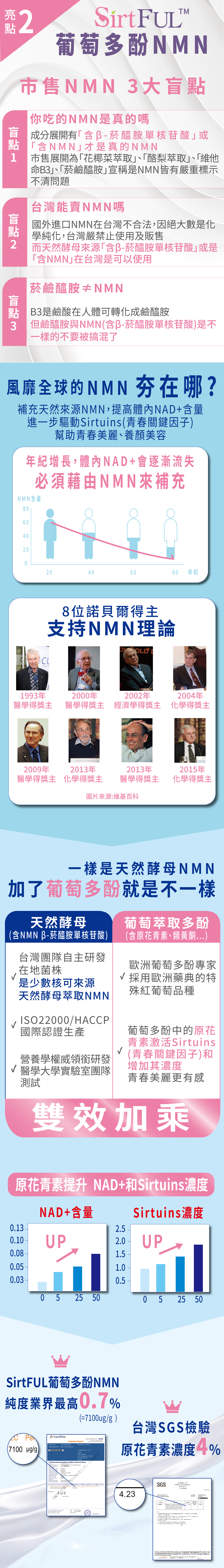 【SirtFUL葡萄多酚NMN】:青春美麗的關鍵,純度業界最高0.7%